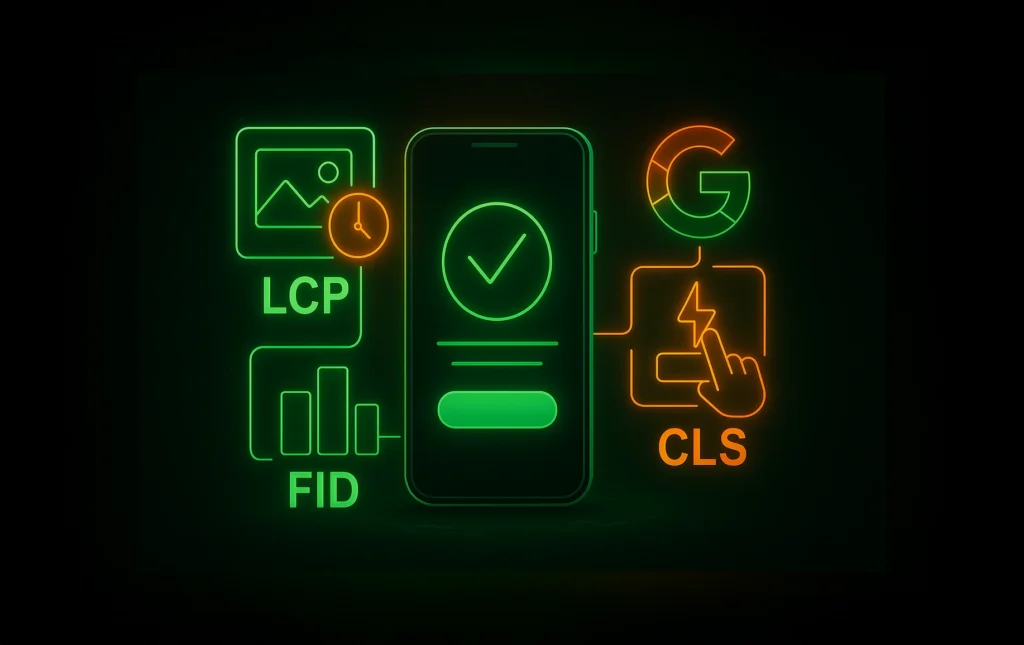 First Input Delay (FID) – jak szybko strona reaguje na Twoje kliknięcie.